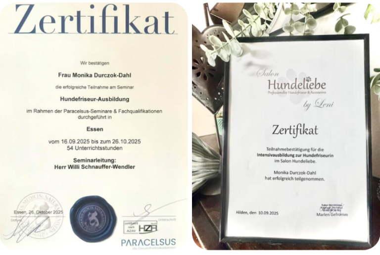 Diese Fähigkeiten und meine ausgeprägte Dienstleistungsorientierung übertrage ich gezielt auf die Arbeit im Hundefriseurhandwerk.